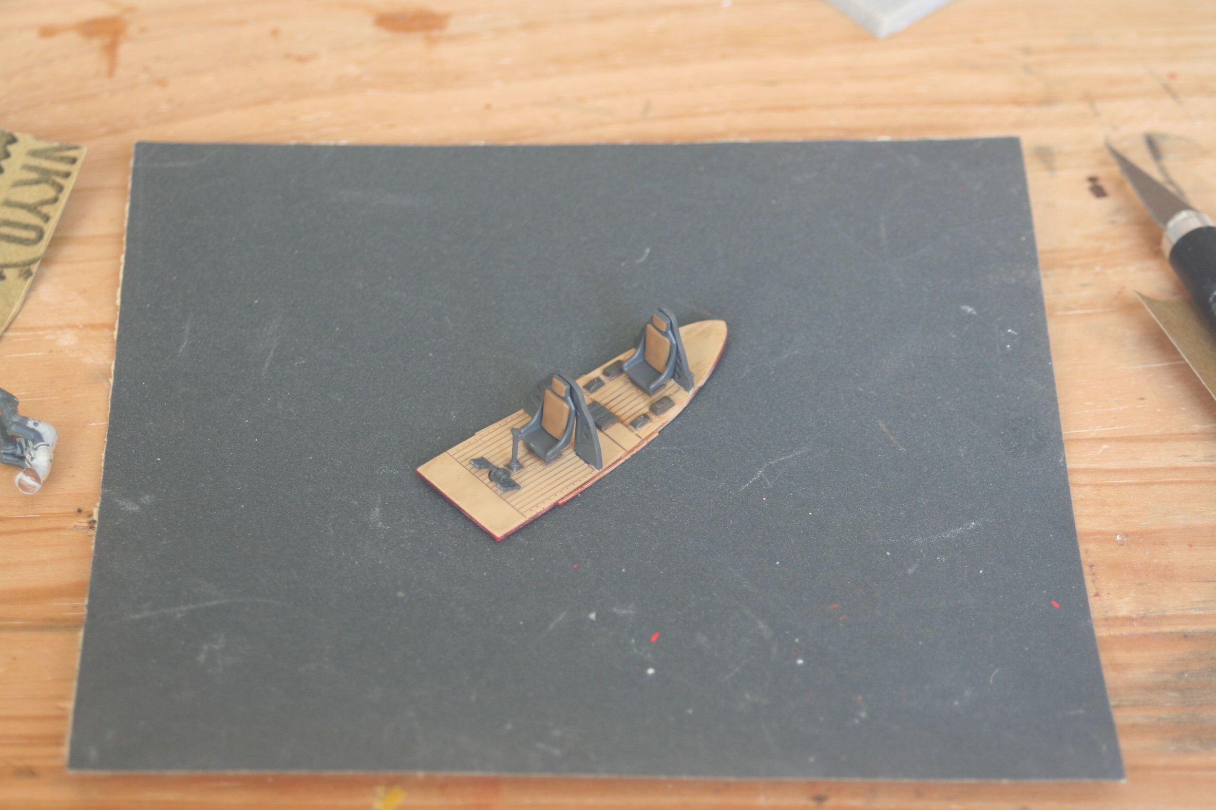 デッキ部分に墨入れし操縦桿やシートを取り付け、内装は完成です。