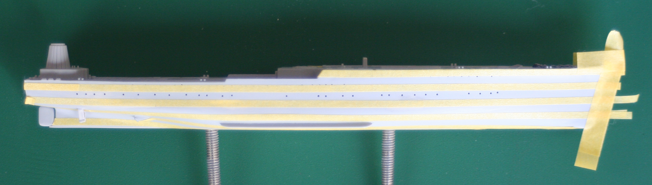 で、私の中では恒例になった鋼板の繋ぎ目表現のために2mmマスキングテープで準備開始。