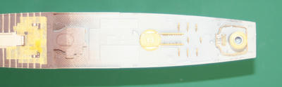後部甲板のレールやクレーン周りのエッチングを装着。