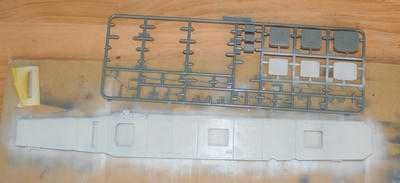 船尾のエッチングに置き換わる突起を削除して早速塗装していきます。