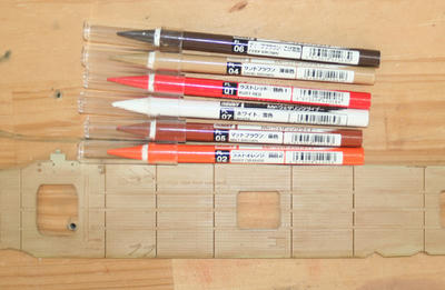 塗装がすべて終わったので船体の汚し作業に入ります。