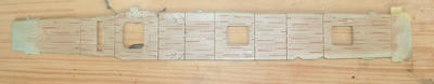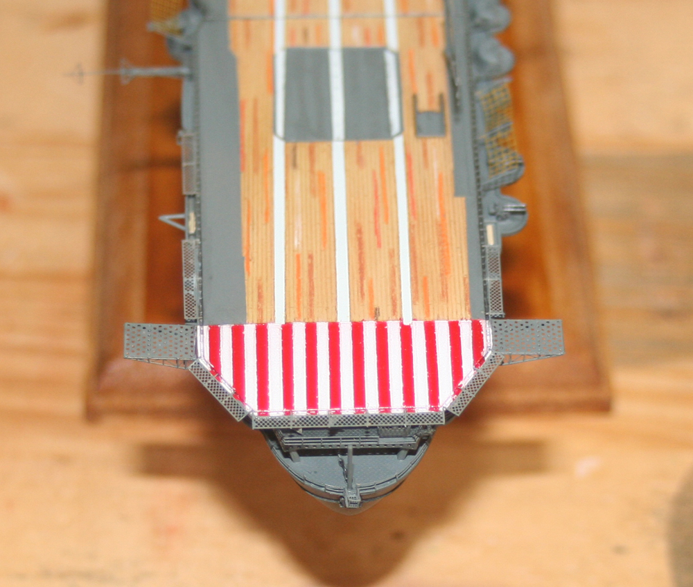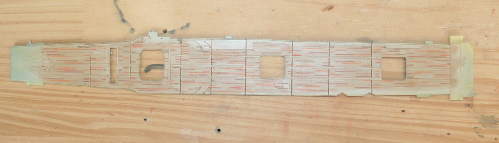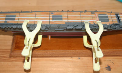 木甲板部分を塗装に備えてマスキングして、エッチングも取り付けます。