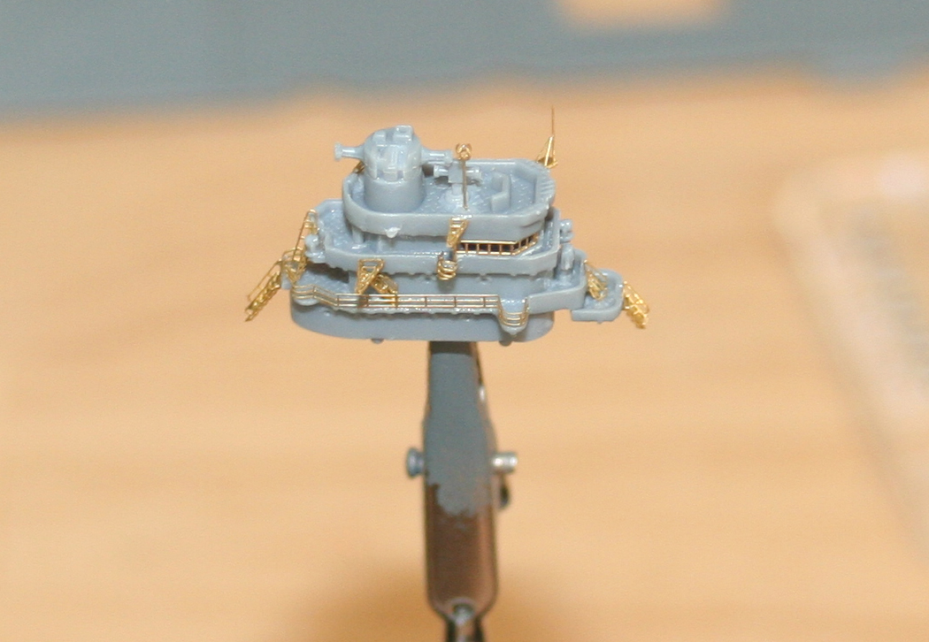 お次は艦橋です。戦艦系に比べると小さな艦橋ですが、エッチングを使うことによって小さいながらも存在感のある雰囲気になりますね。