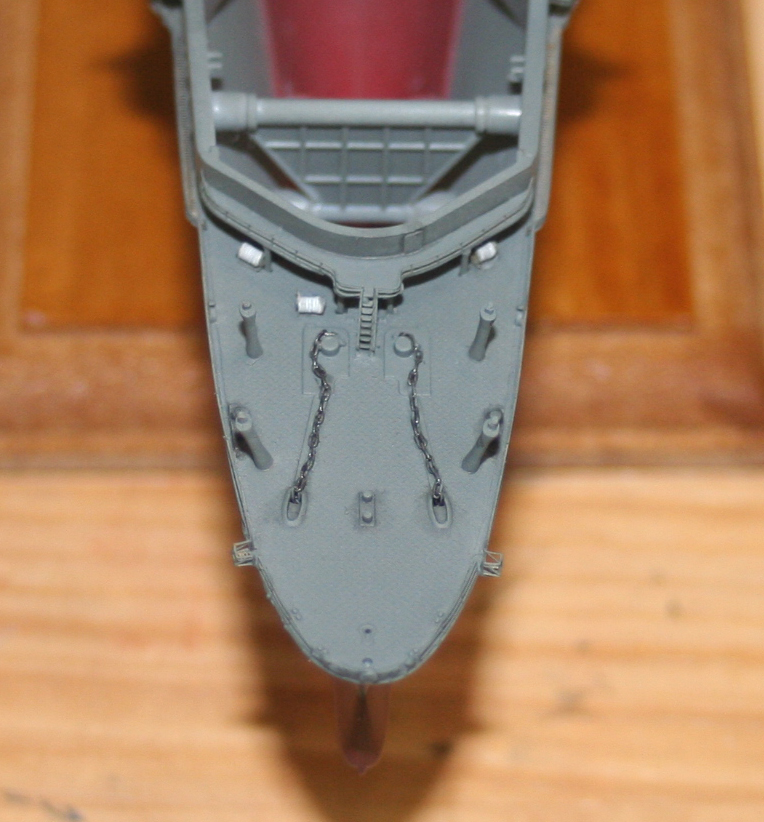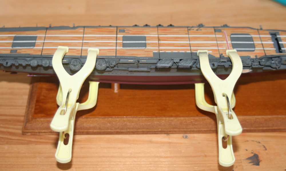 飛行甲板を付けると作業できなくなるので、鎖を黒鉄色で先に塗りました。