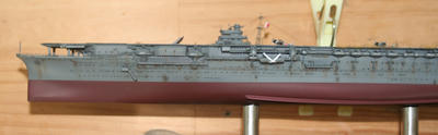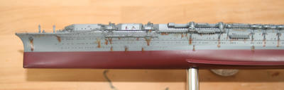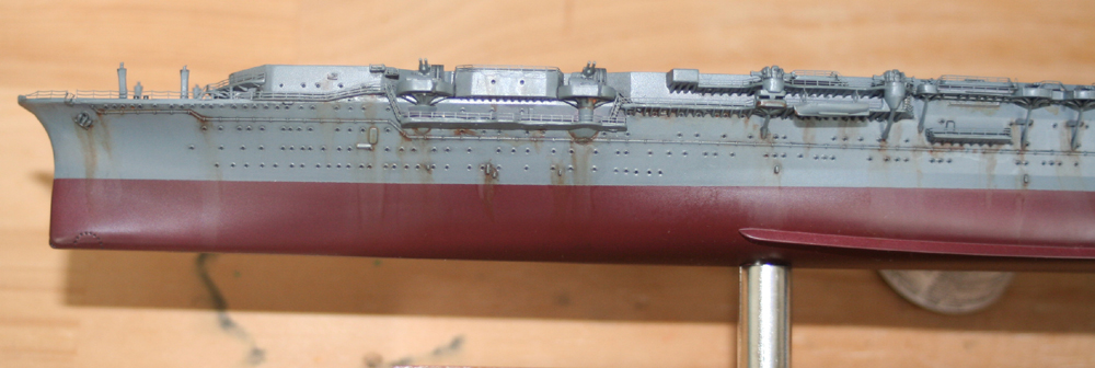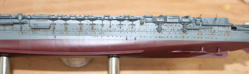 同じく飛行甲板を付けると作業できなくなるのでここで船体への墨入れとウォッシングを実行。
