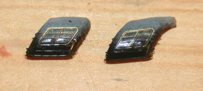 黒部分をマスキングして船体色で仕上げ、煙突の完成です。