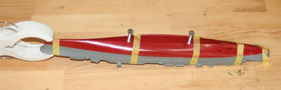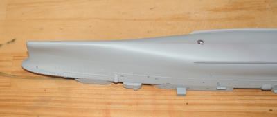 合わせ目の処理が済んだ後、スクリュー周りのパーツを取り付けてまたパテ盛り。