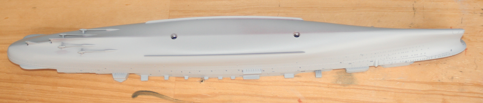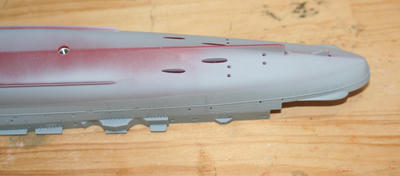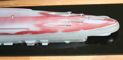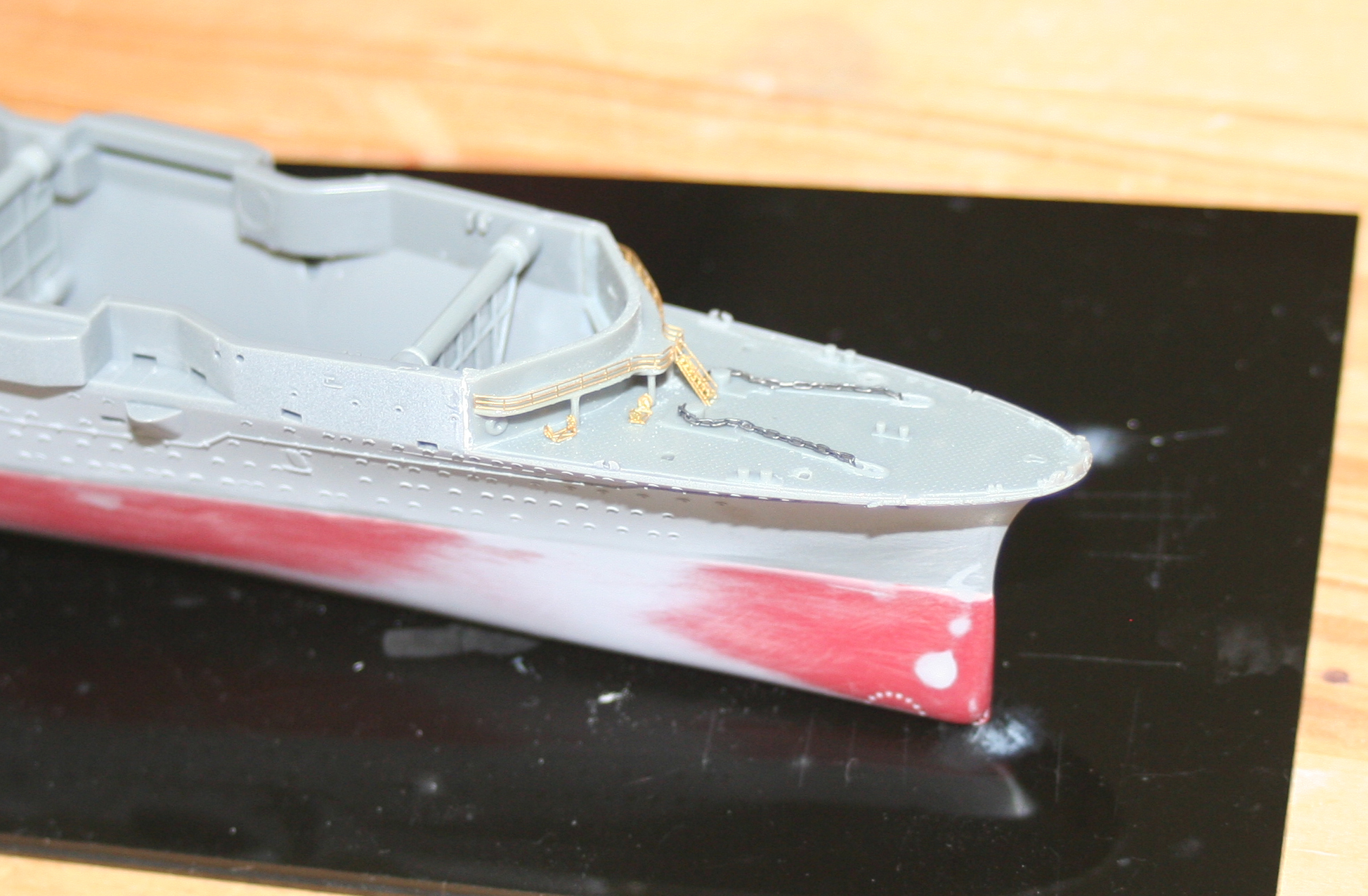 エッチング作業が終わったのでいよいよ船体色への塗装です。