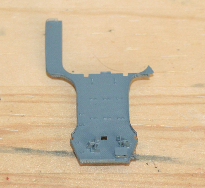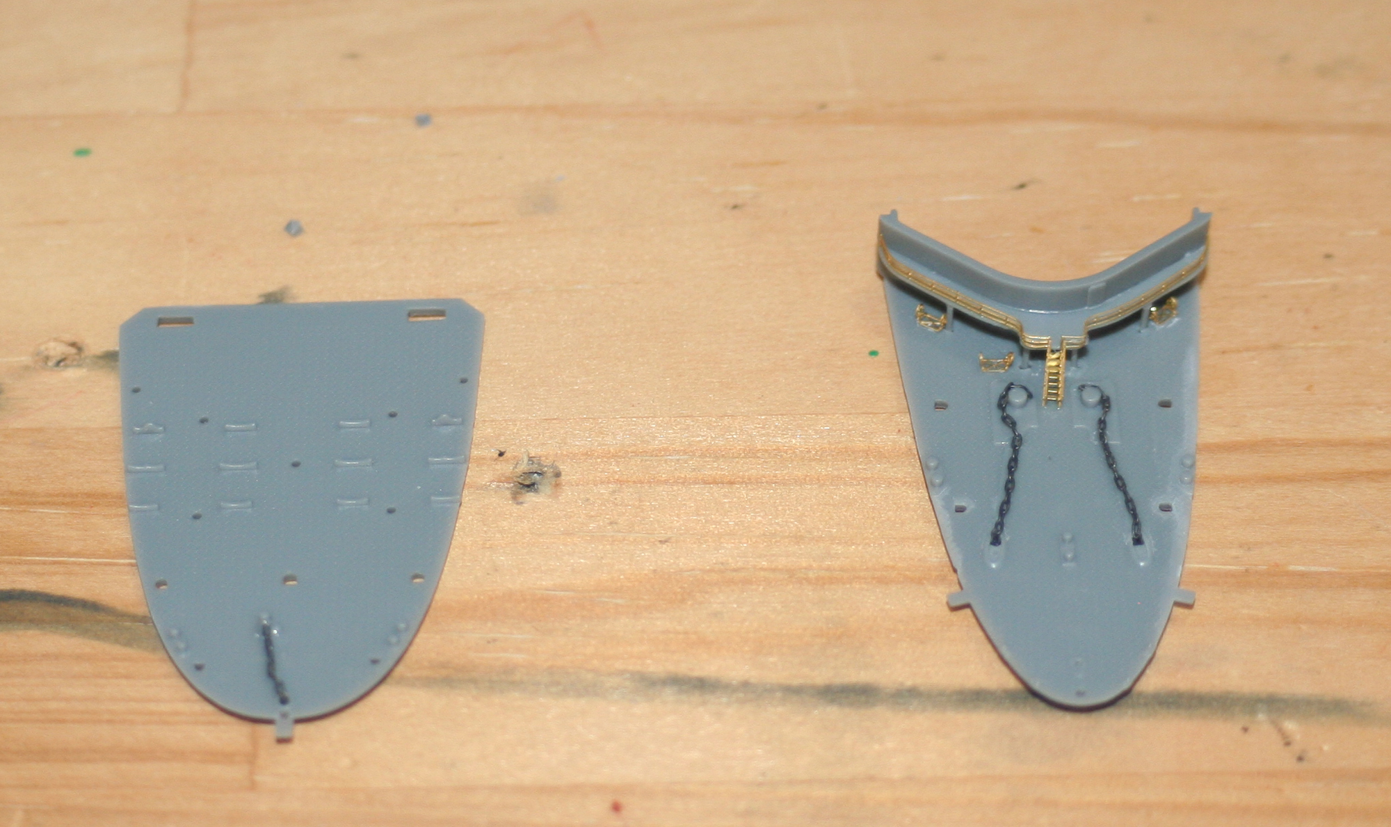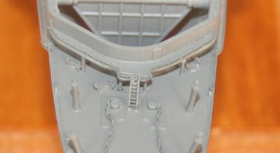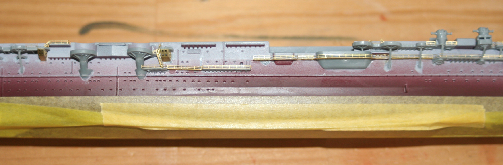 作業事故を防ぐために後回しにしていた一番上のエッチングを装着して、船体のエッチング作業は一通り終了しました。