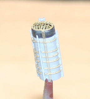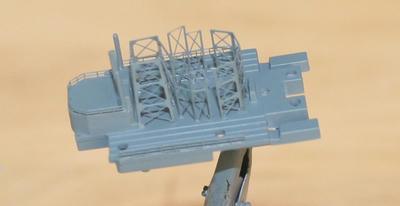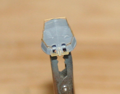 写真がボケてしまいましたが、射撃指揮所?でいいのかな?を組んでエッチングを付けて行きます。