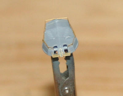 取り付けの穴が不要になるので埋めてエッチングを接着したのですが、これの位置あわせに苦労しました。