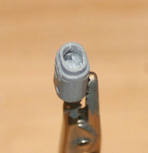 写真のようにキットのままだとマストの集合点がかなり分厚くなるので削って修正をしました。