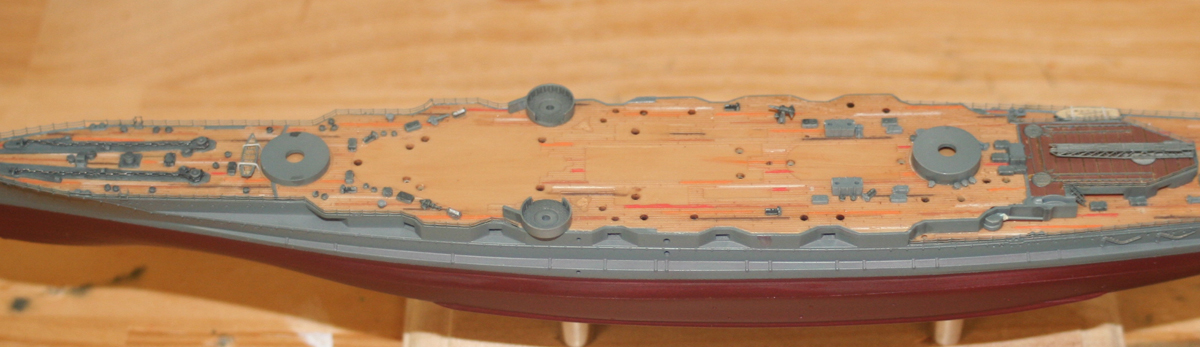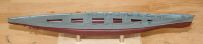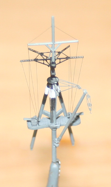 手摺を取り付け、まとめて艦体色で塗り上げました。