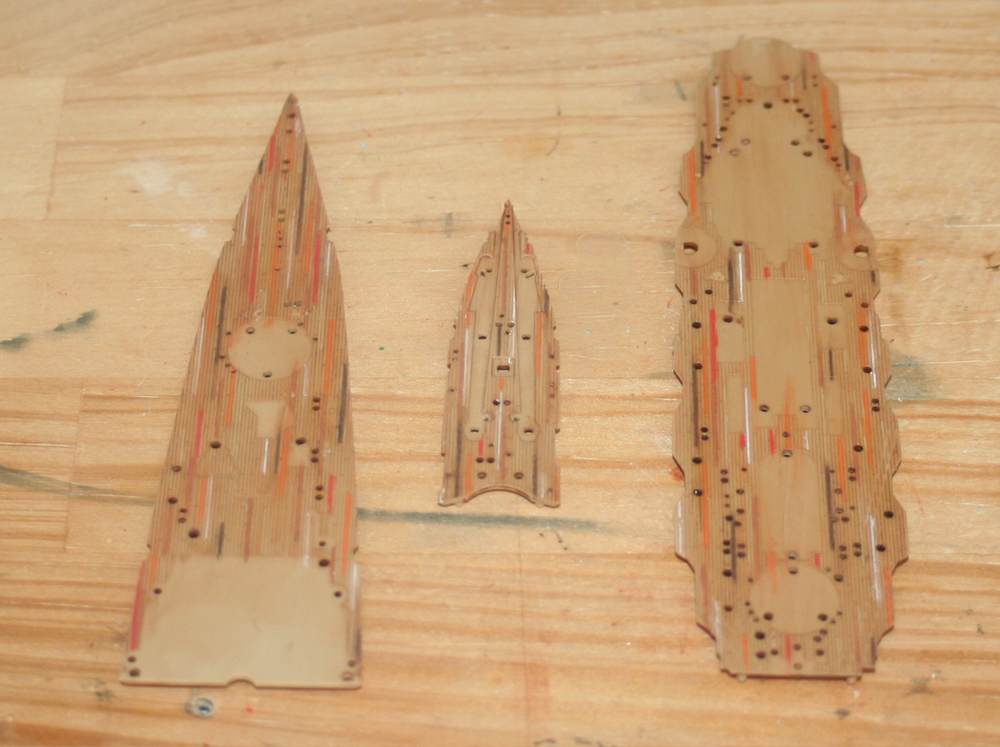 ここにエッチングをどんどん付けて行き、船体色で塗装後、塗りわけのためにマスキング。