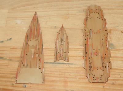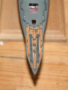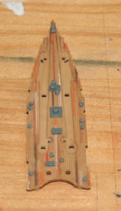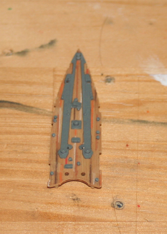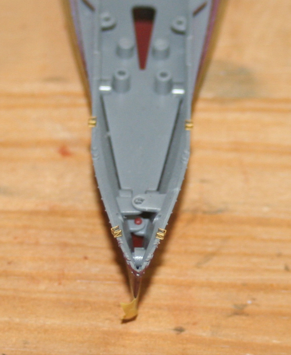 本体に碇見台をとりつけ、前甲板に鎖を付けます。