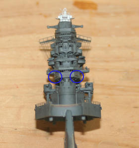 主砲の側距儀の裏が肉抜きされているのでパテで埋めました。