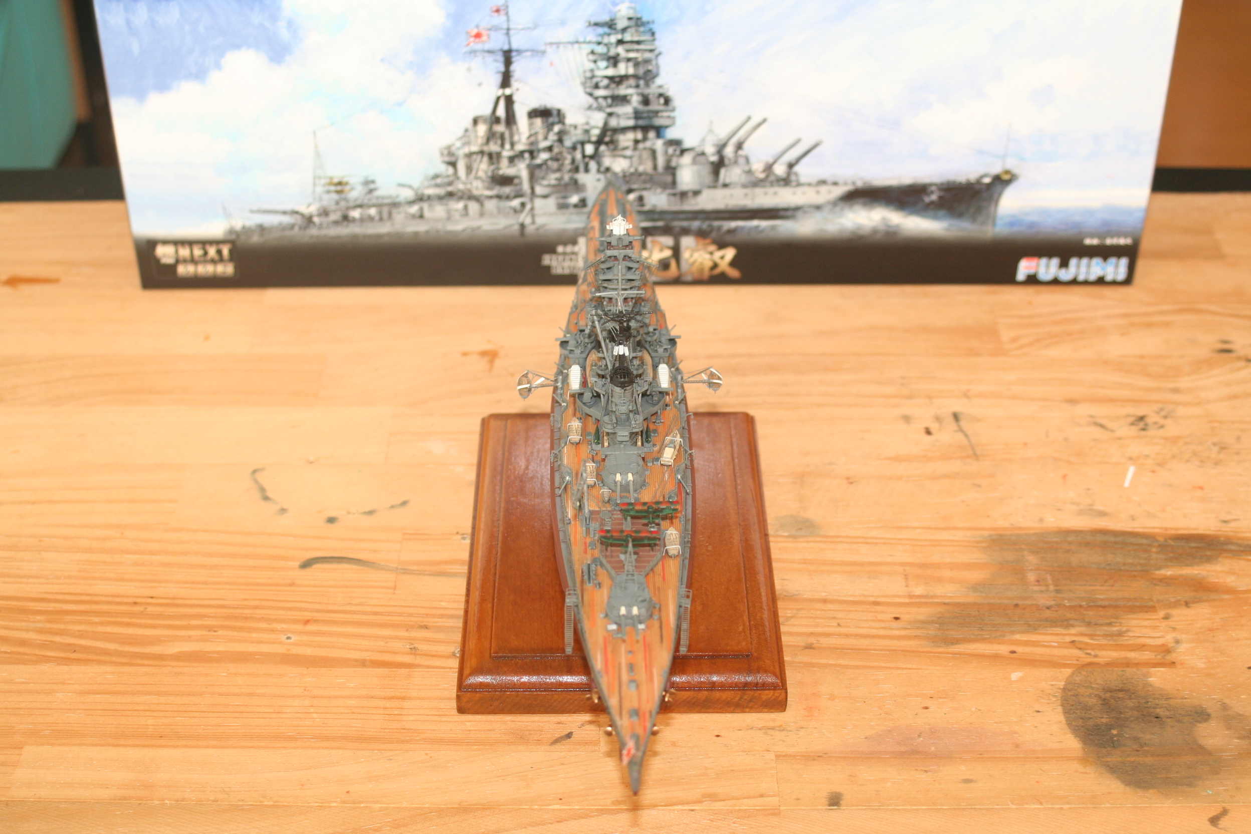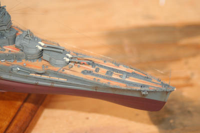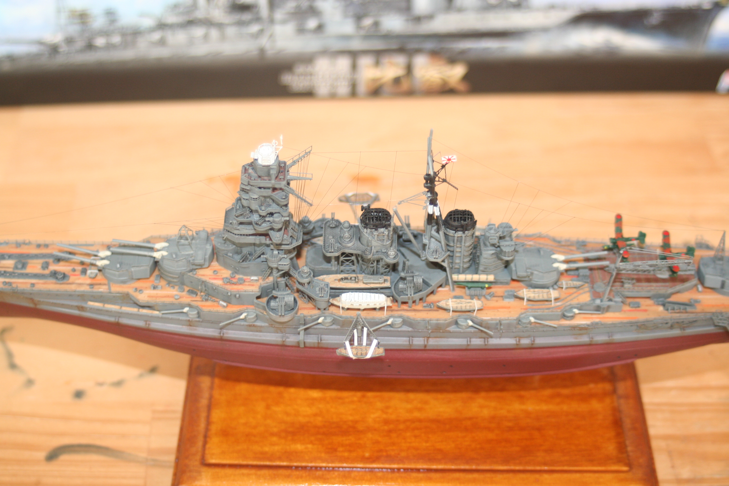 四番主砲と艦載機を載せてパーツの取り付けはすべて終了、後は残った空中線を張れば完成です!
