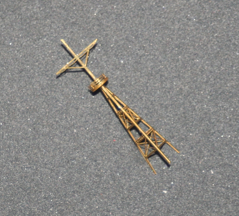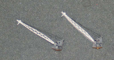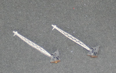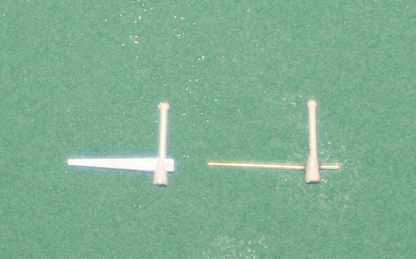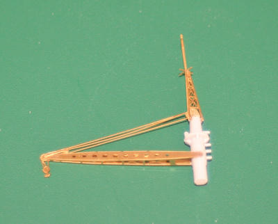 これはエッチングパーツに含まれていないのですが、小型のクレーンが少し太すぎる気がしたので真鍮線で作り直しました。