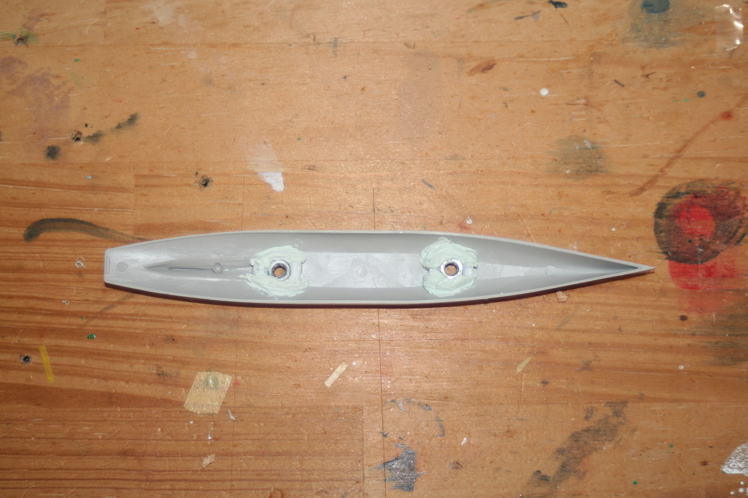 合わせ目の処理を終えたので、整流板とスクリューの軸受けも接着し、ここも合わせ目を綺麗にしていきます。