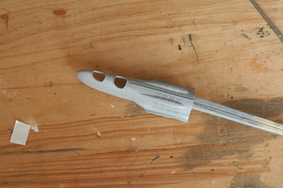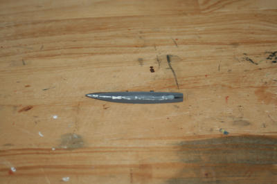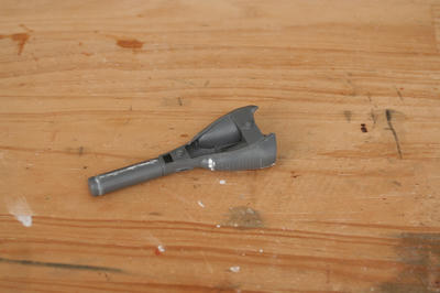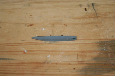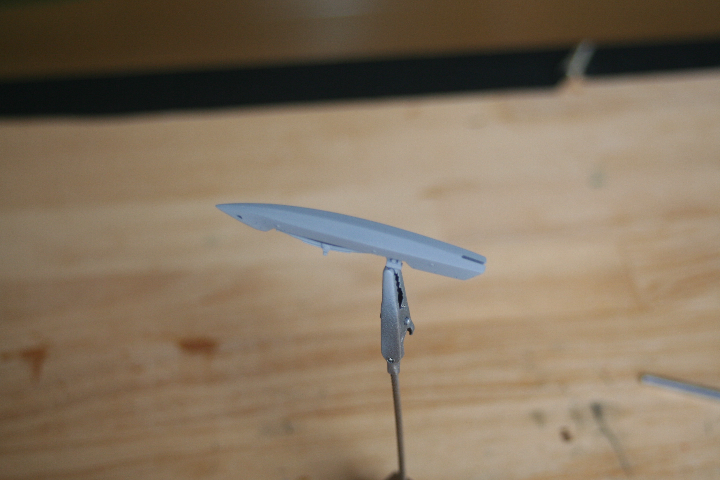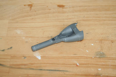 次に機首の下につくアウトリガを作ります。合わせ目が出るので溶きパテで埋めました。