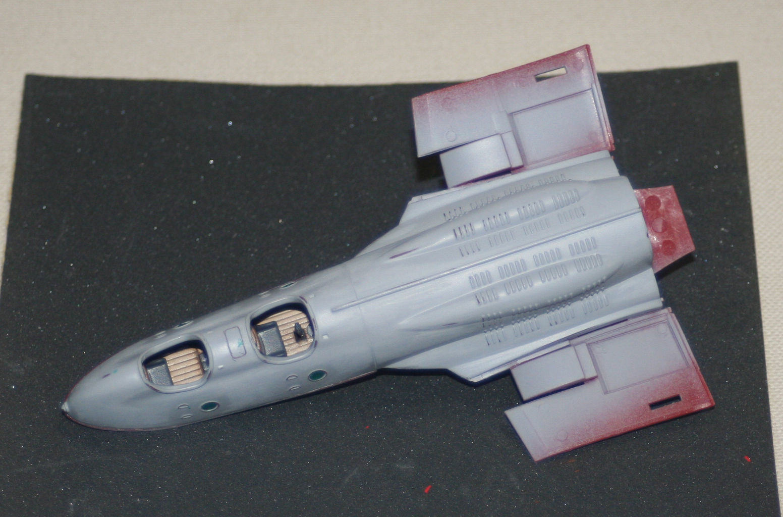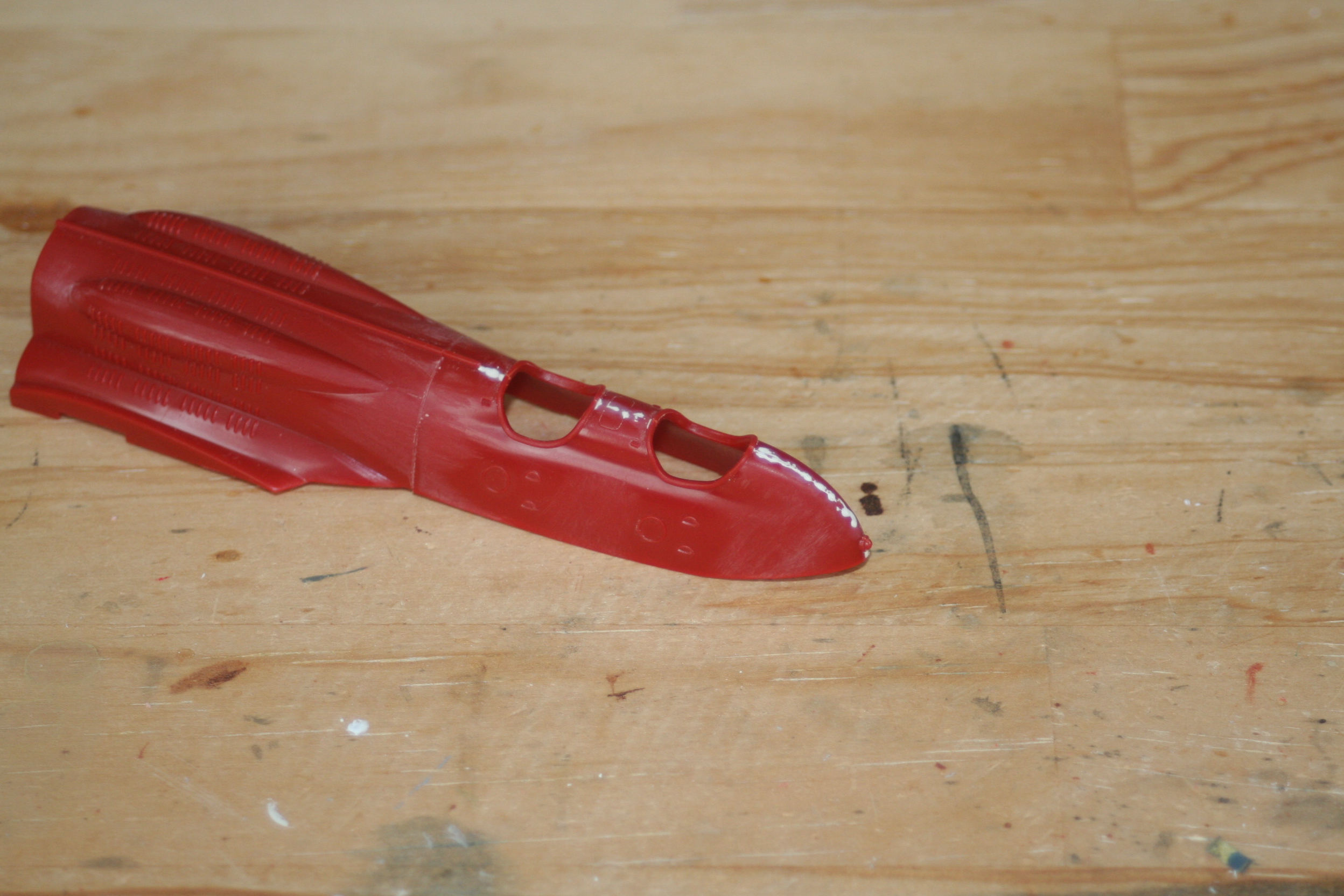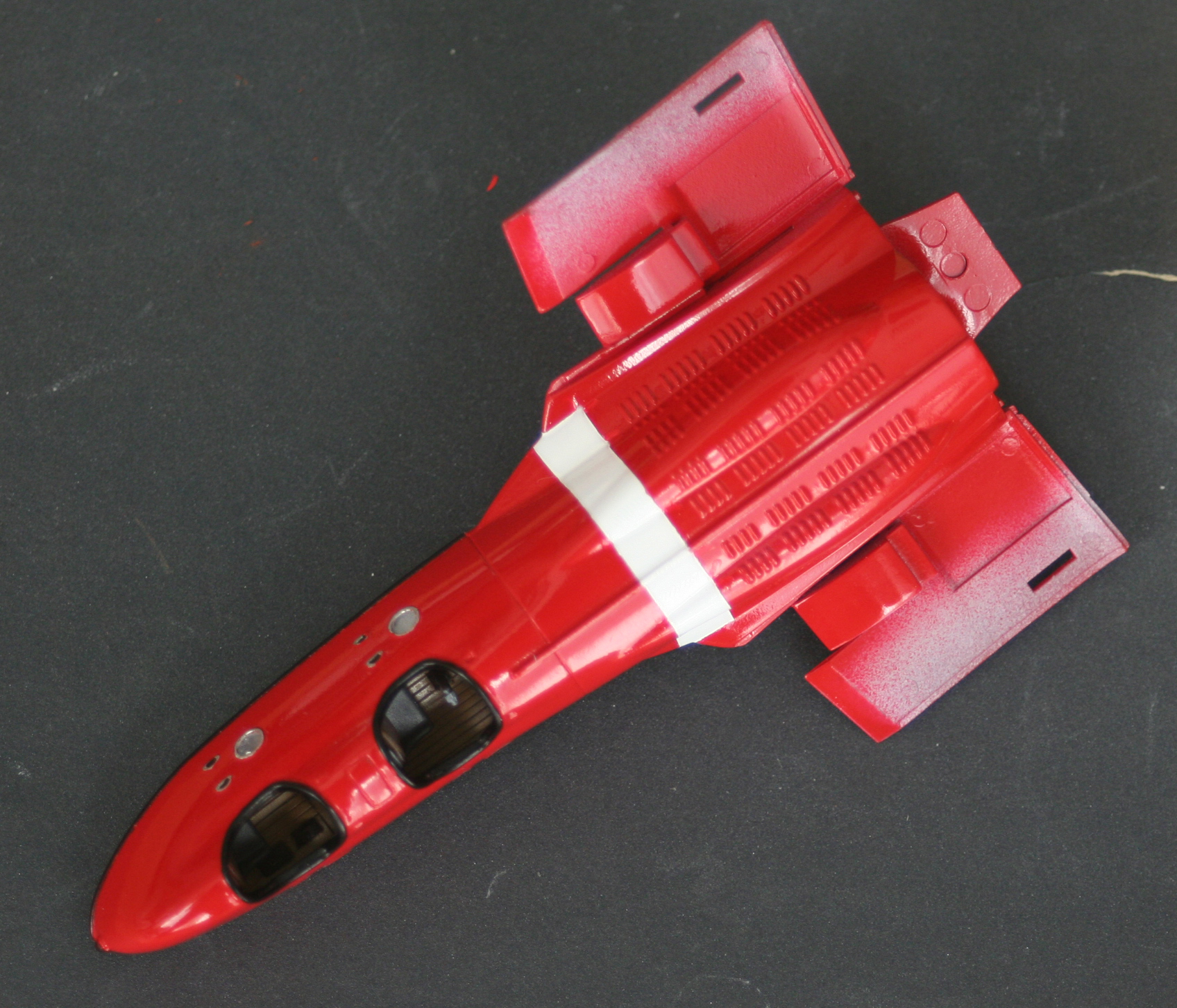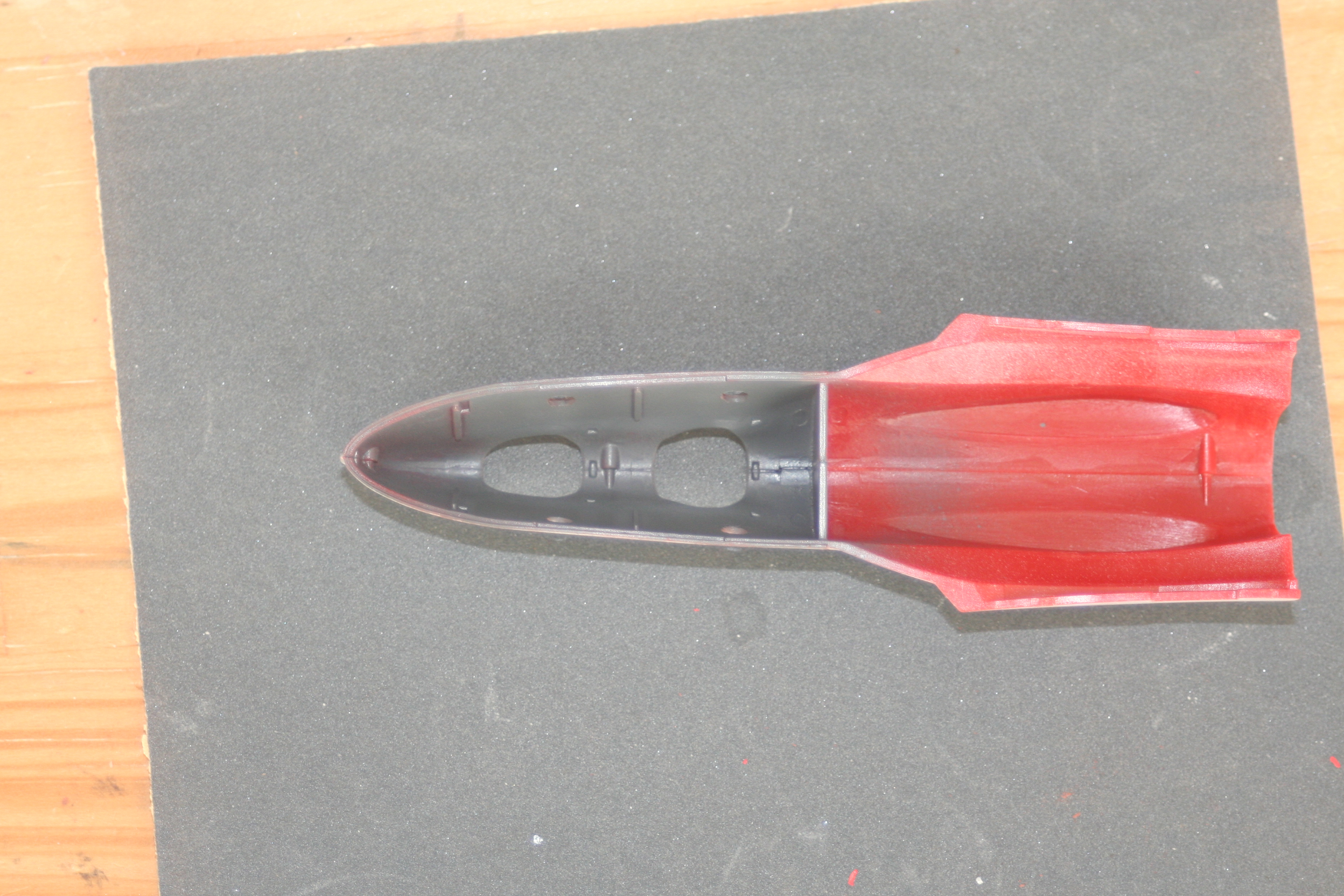 改めてサフを吹いて色を均一にしてから今度はスーパーイタリアンレッドで塗装。