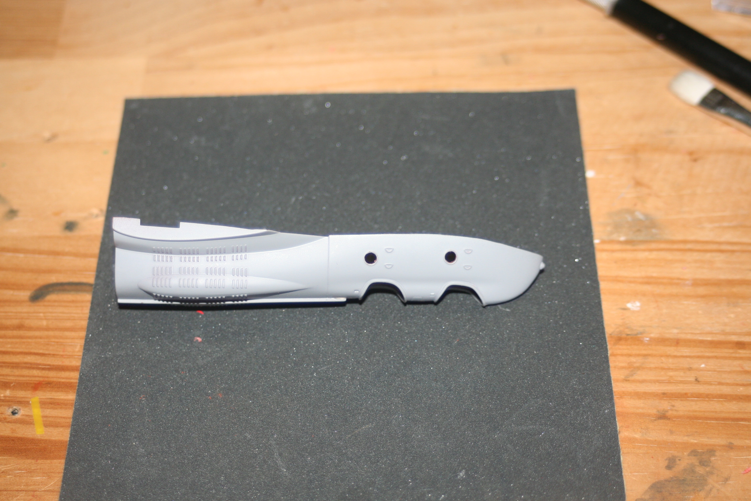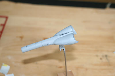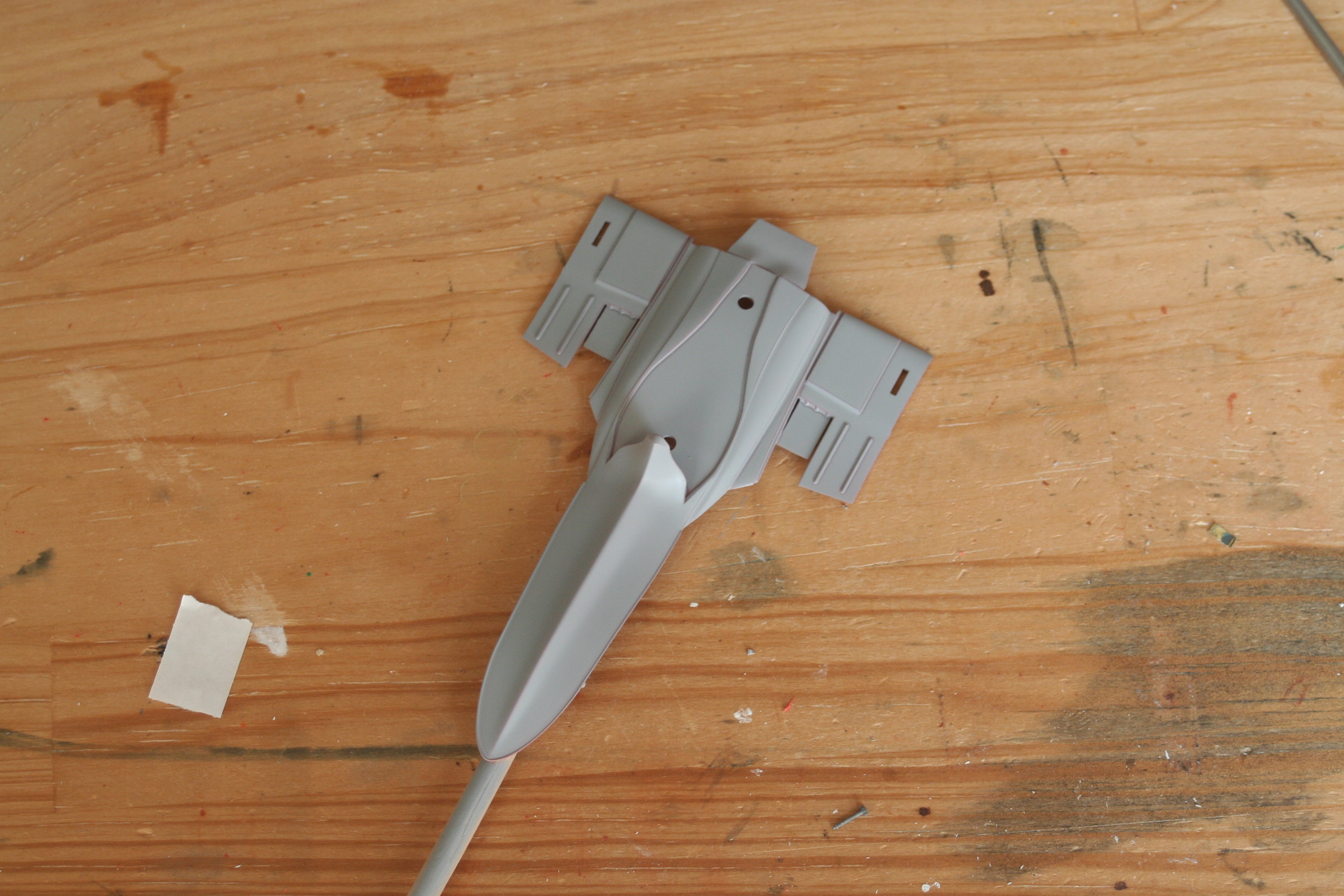 ちょうど羽の付け根からコクピットにいたるまで結構な合わせ目が出てしまうのでここで再度、パテ埋めやサフによる仕上げチェックを行います。