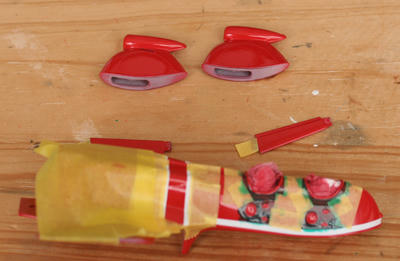 ボディパーツですがまずホワイトで塗って普通の赤を塗ったのですが思ったより軽いと言うか安っぽい感じになってしまったので