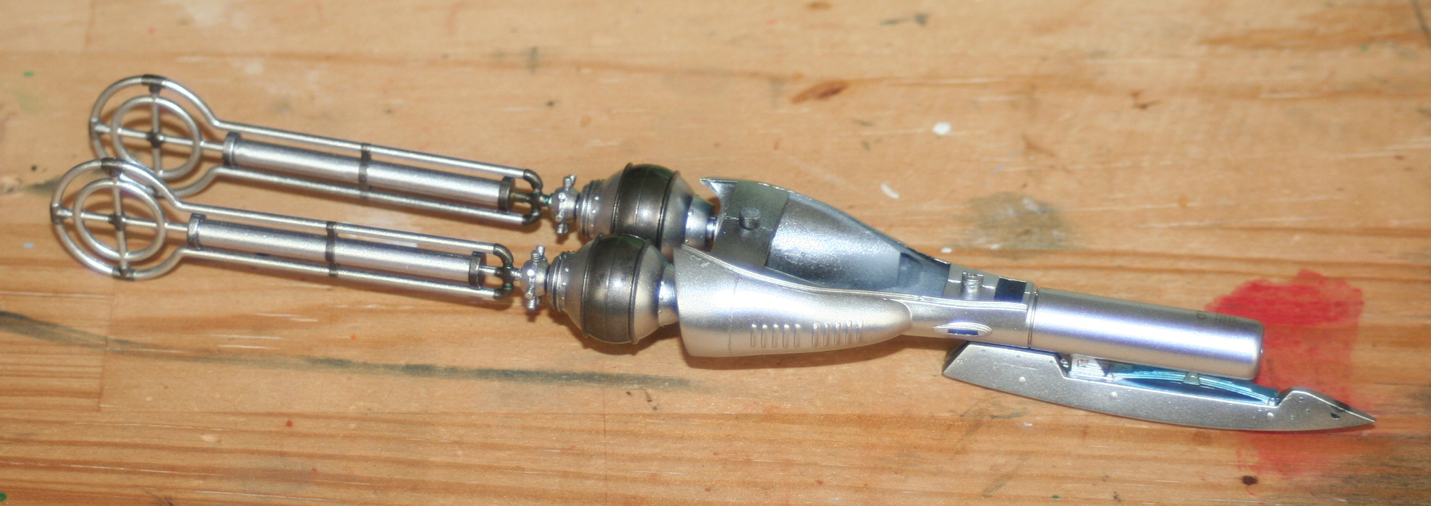 今回は飛行状態でという依頼ですので固定バーにセットするクリアパーツの機体部分をシルバーのあとこちらも焼鉄色で仕上げました。